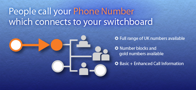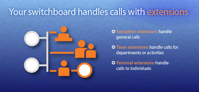 Your switchboard's 'plan' controls how calls are handled, using a mixture of reception, team and personal extensions. Each extension can have a direct dial inwards (DDI) number allocated to it. |