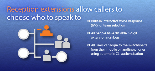 Business call handling can be updated at any time through a simple and responsive web interface. When you introduce new business processes, or your company changes, your switchboard keeps pace. |