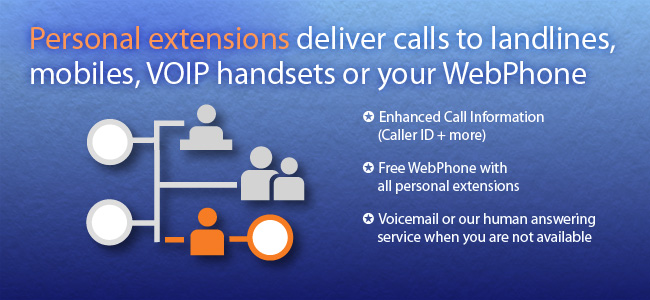 You can't always answer your caller, but each extension can take messages using voicemail or our plug-in human answering service, and deliver them to you within seconds. |