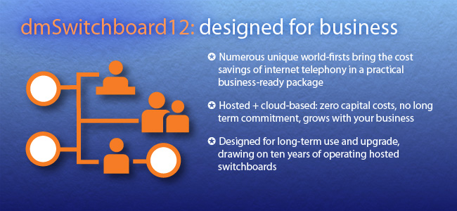 dmSwitchboard12 is a virtual switchboard designed to handle your company's phone calls: inbound, outbound and internal.